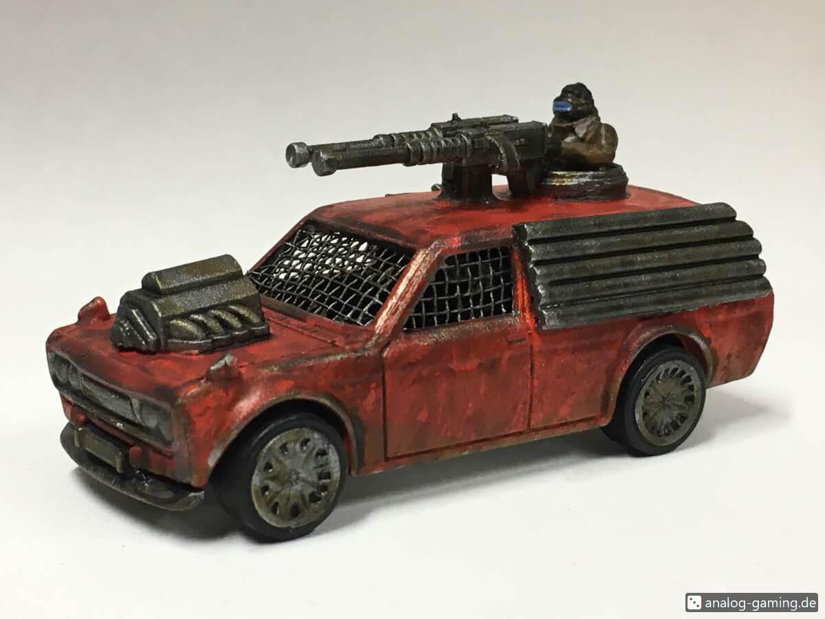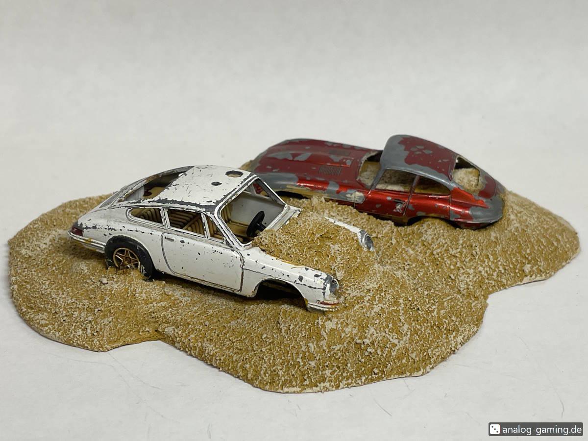 Some cars and terrain for Gaslands. I didn’t play the game (yet), but liked the idea of converting toy cars.