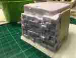 The basic structure is a styrofoam block as the center, and lots of single small styrofoam bricks. I got the idea from this German blog.