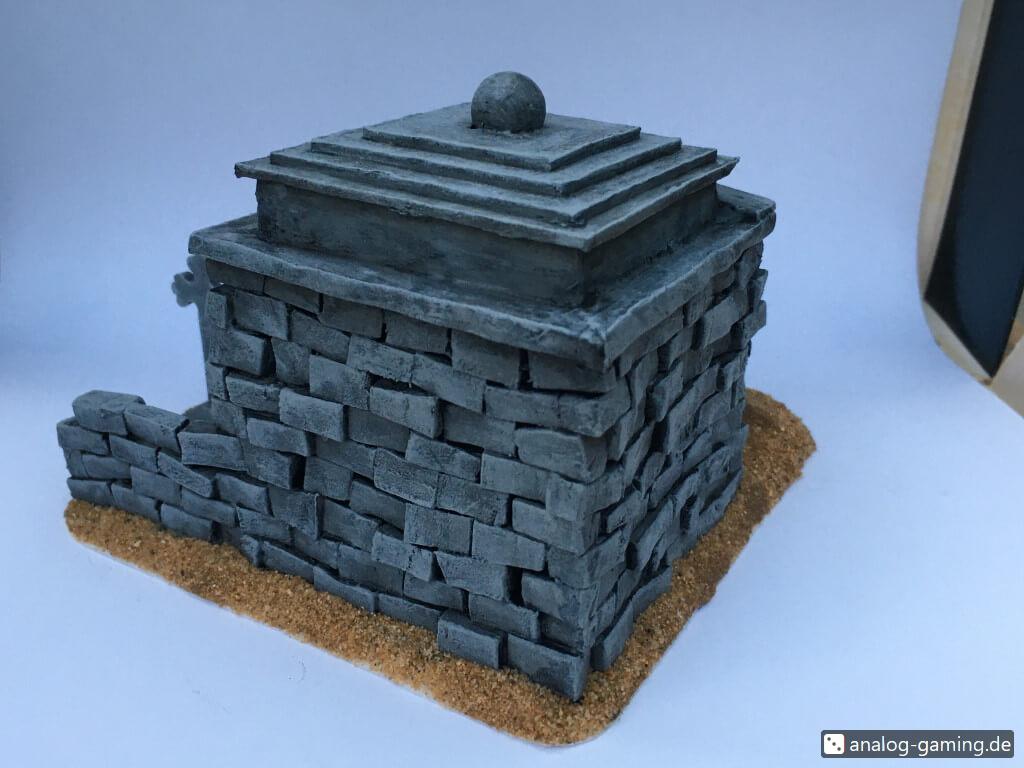 I really like the final look, but I probably wouldn’t build a larger terrain piece this way…cutting and gluing the bricks for this small building took already too much time.