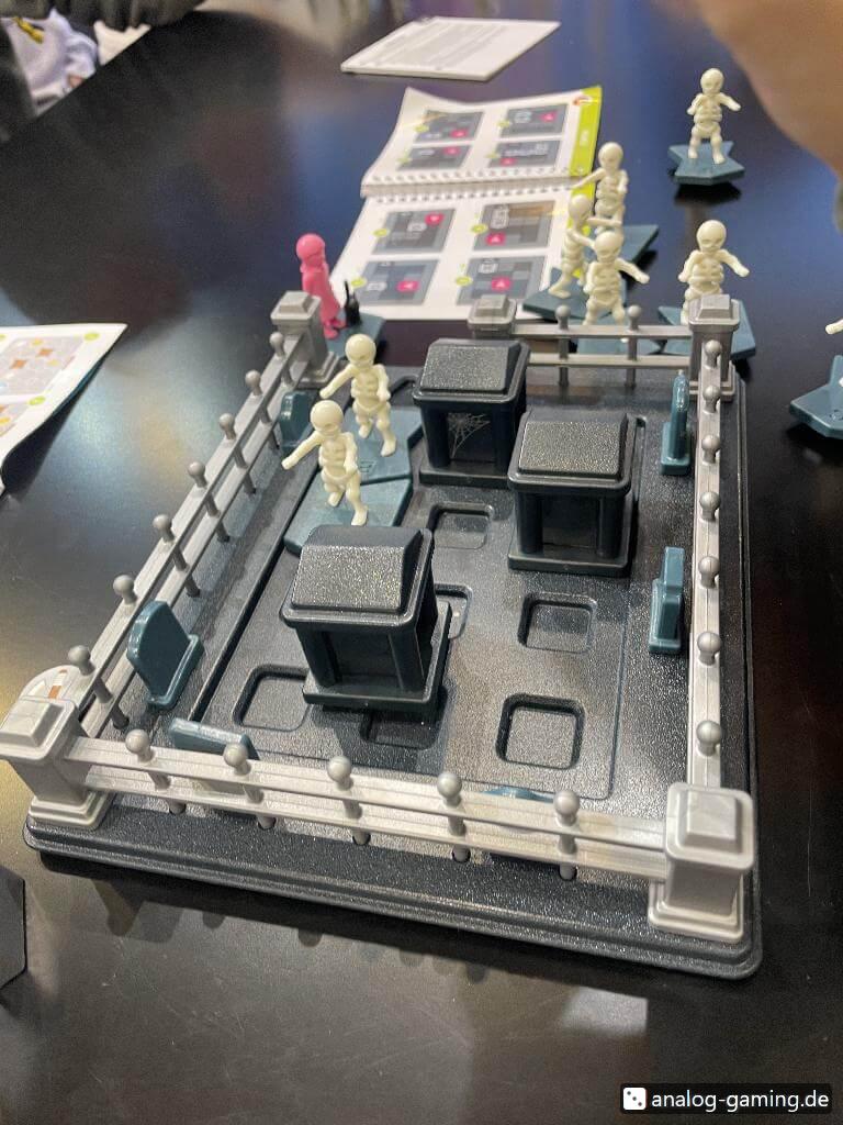I played mostly Break-Out, a kind of “dungeon-escape” game where you have to roll your pawn (a cube) across a dungeon, pick up a key (and in some scenarios a weapon), which stick to the cube via magnet.